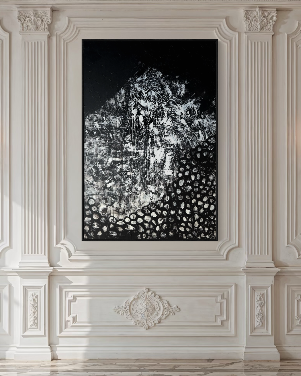 Black and white is not a choice: it’s a language. It’s my balance and a reflection of how I live in alignment. It removes everything unnecessary: There is no place to hide. It forces the work back to its essence: contrast, tension, presence. What may seem like a limitation is clarity.